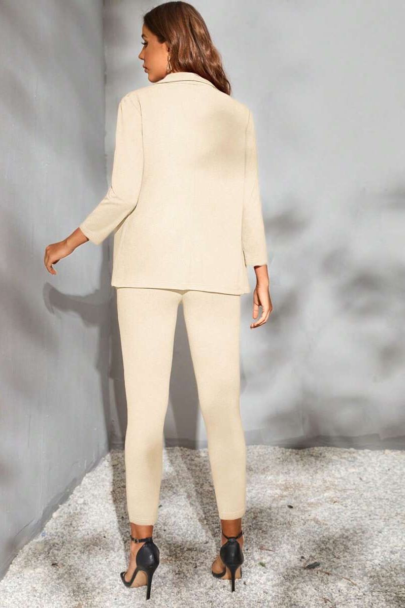 The Mira set redefines professional elegance with a modern twist. Featuring a long asymmetric top with sleek zip details and matching slim trousers, this dark blue ensemble delivers style, structure, and subtle flair. Ideal for cooler seasons, Mira blends sophistication with statement design—perfect for women who mean business but move with grace.