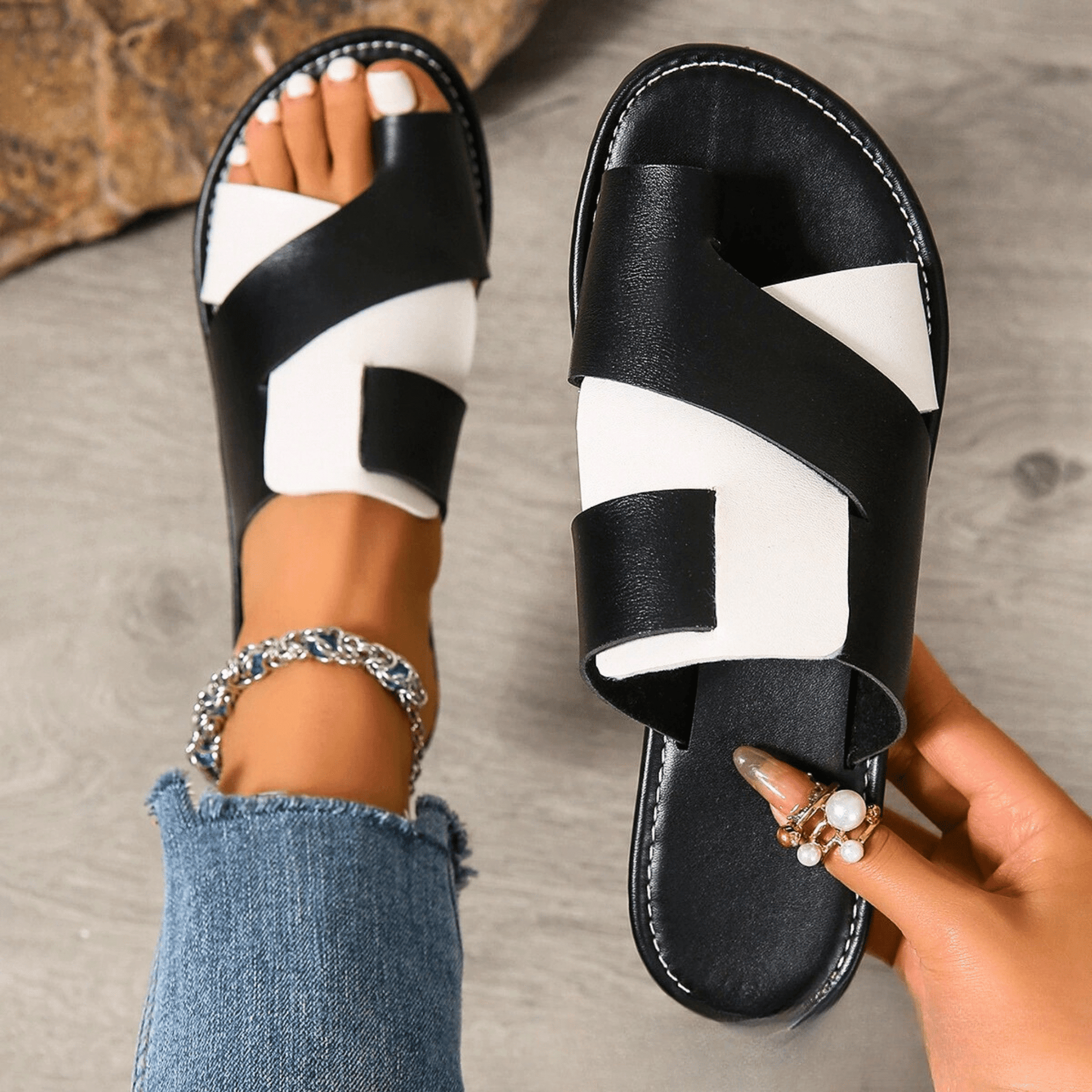 Crafted with chic handwoven leather straps for a standout look and soft, flexible comfort that moves with you. Finished with a cushioned insole and bold two-tone design, they’re your new go-to sandals for spring-to-summer style.
